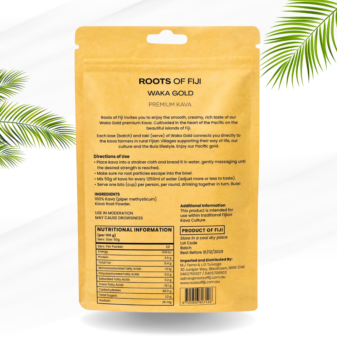 Sourced direct from Fijian farms, this is 100% noble waka root only—no stems, no stumps. Harvested from mature plants and finely ground for a smooth, clean mix that delivers the real Fijian experience.